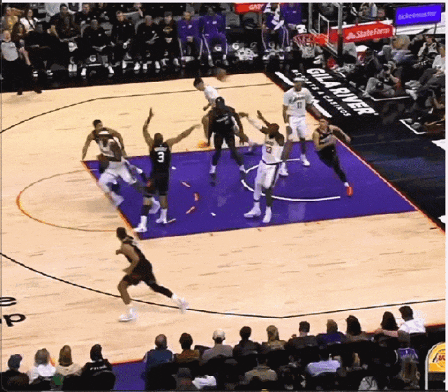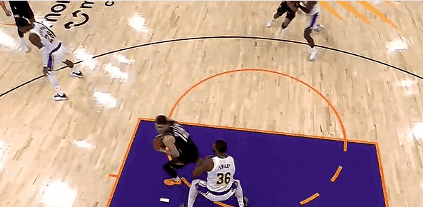 末节,詹姆斯穷追猛打,在龙哥面前轰进3分,湖人轰出24-0进攻狂潮打停太阳。