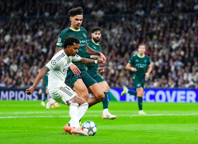 第7分钟,皇马打出快速反击,罗德里戈的横传越过整条曼城防线,维尼修斯在多纳鲁马和努内斯的干扰下,搓射打偏。