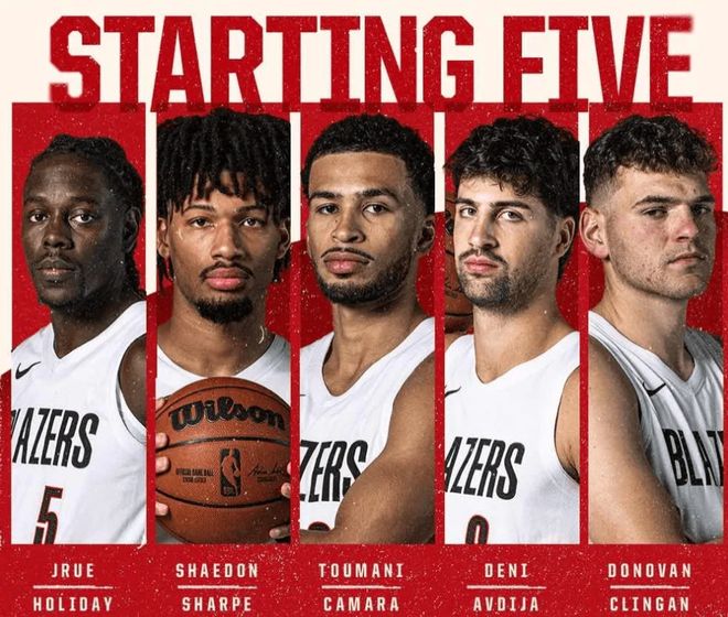 本场比赛,首发阵容方面,开拓者这边,利拉德因伤继续缺阵,新主帅排出的首发五人组为:朱-霍勒迪、谢登-夏普、德尼-阿夫迪亚、图马尼-卡马拉、多诺万-克林根;快船队这边,首发阵容则为:詹姆斯-哈登、博格丹诺维奇、科怀-伦纳德、小德里克-琼斯、伊维察-祖巴茨。