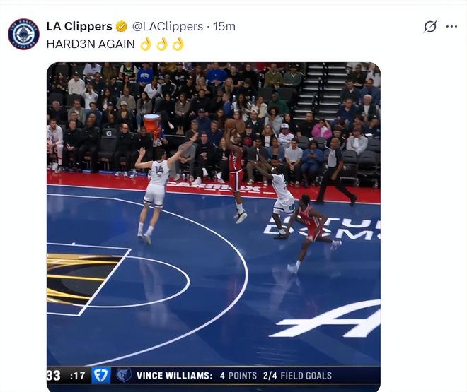 下半场8中1状态全无!哈登23+11+7又背锅 快船遭逆转吞三连败