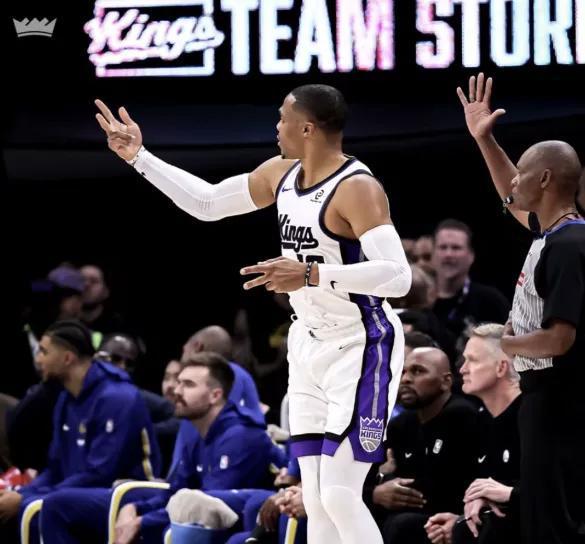 先给不了解情况的朋友捋捋这场比赛的来龙去脉。北京时间11月29日,NBA杯赛焦点战,国王对阵爵士,本来就是一场双方都想拿下的常规赛,可国王这边偏偏屋漏偏逢连夜雨——主力中锋小萨博尼斯伤停,阵容直接少了半条腿,只能让尤班克斯临时顶上首发。更要命的是,球队里好几个人都被卷进了交易流言,心思早就不在球场上了,这种状态打比赛,结果似乎从一开始就注定了。但谁也没料到,37岁的威少会成为场上唯一的"逆行者"。比赛刚开打3分钟,威少就给所有人来了个下马威:只见他眼疾手快抢断爵士传球,像一道黑色闪电冲过半场,精准找到快下的拉文,一记不看人传球直接喂到手上,拉文顺势暴扣得分,全场瞬间沸腾!这波操作直接把爵士的防守打懵了,也让国王球迷看到了希望。可你再看国王其他球员,要么进攻犹豫,要么防守漏人,完全跟不上威少的节奏。第一节打完,国王就陷入落后,而威少已经拼下了5分2助攻,攻防两端忙得像个陀螺。