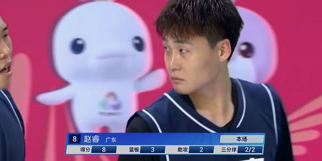 次节中段余嘉豪下场休息,广东队继续疯狂冲击篮下,赵睿强突再拿2分,逼得丁团长被迫再换回体能亮红灯的余嘉豪,广东队乘胜追击再提速,胡明轩轻松飙中三分,周鹏下顺吃饼,李炎哲中投打板也有,徐杰接周鹏助攻飚进底角三分,广东队内外开花,把浙江队打的毫无脾气。