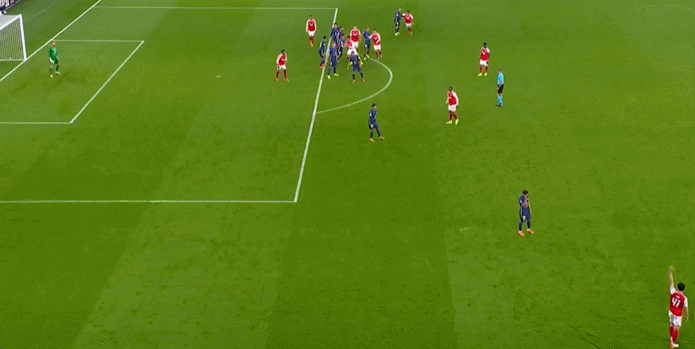 赛至第57分钟,加布里埃尔前插到门前接应赖斯任意球传中抢点冲顶破门,打破僵局。第70分钟,加布里埃尔接应赖斯角球传中争顶摆渡,助攻哲凯赖什攻入彻底锁定胜局一球。
